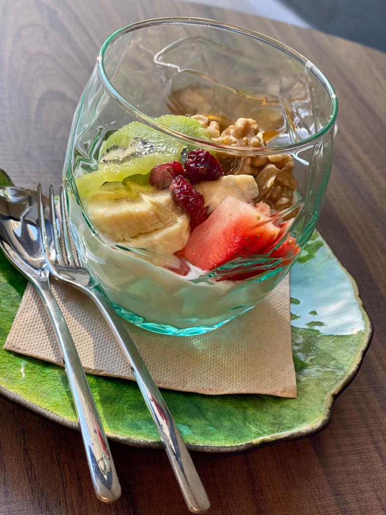Nuestros Desayunos BolsTostadasTortitasBols1-NuecesYogur griego, kiwi, frutos rojos y nueces2,22-MuesliYogur griego, physalis, plátano y muesli2,23-NutellaYogur griego, plátano, fresa, nueces y nutella2,2Tostadas1-Tomate, aceite virgen extra y jamón ibérico32-Queso crema, nueces y miel2,53-Queso crema, guacamole y tomate cherry2,54-Nutella, fresas, plátanos y nueces2,55-ClásicaMantequilla y mermelada de fresa y melocotón1,5Tortitas2 unidadesToppingsMielMermeladaNataNutella1,5Zumo de naranja natural2Precios con IVA incluido.