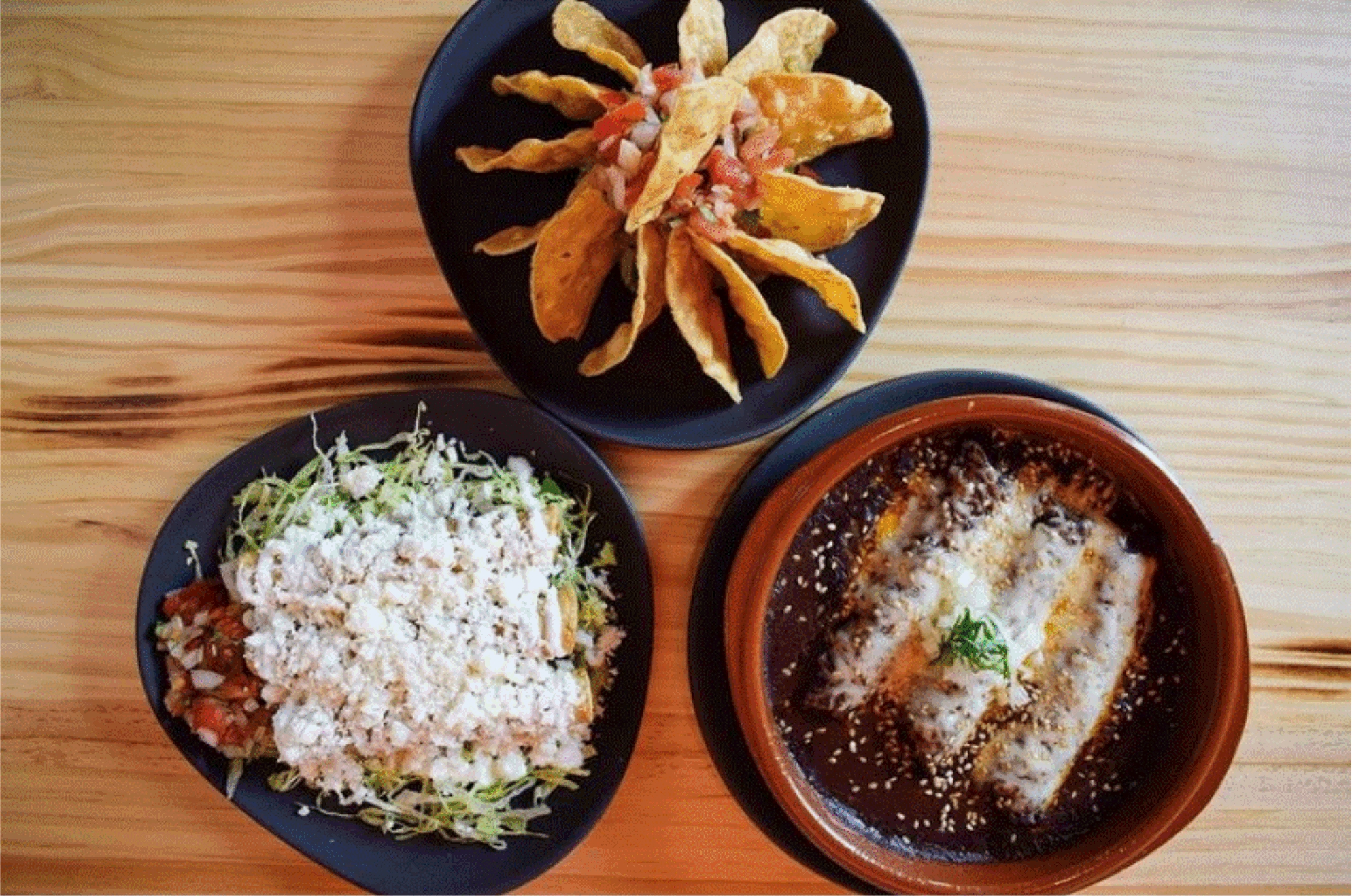 Tres tortillas de maíz rellenas de pollo con queso y la salsa que más te guste