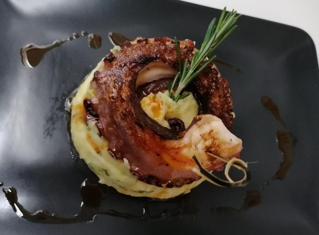 Our food menu SUGGESTIONSSNACKFROM SEAFROM THE FARMRICEFROM ORCHARDDESSERTSSUGGESTIONSSNACKFried or grilled squid13€Grilled scallops with albariño sauce and parsley16€Grilled scallops with albariño sauce and parsley19€Steamed mussels9€Pork raxo with potatoes14€Razor clams from the estuary14FROM SEAOctopus ray with leek puree16€Grilled salmon with potatoes and sautéed pepper and onion18€FROM THE FARMIberian secret14€Grilled croca with potatoes15€Iberian ham cachopo22€Cecina cachopo with goat cheese26€RICE(For two)Octopus nero rice sauteed with sweet and spicy paprikaPrice for two person For one person 16€28€Mushroom and mushroom risotto16€Leek risotto11€Soupy rice with mussels and scallops18€FROM ORCHARDMixed salad6€Caprese salad8,5€DESSERTSChocolate coulant with cherry ice cream and white chocolate syrup5€Cheesecake Cold5€Lime mousse cake (Lemon Pie)5€