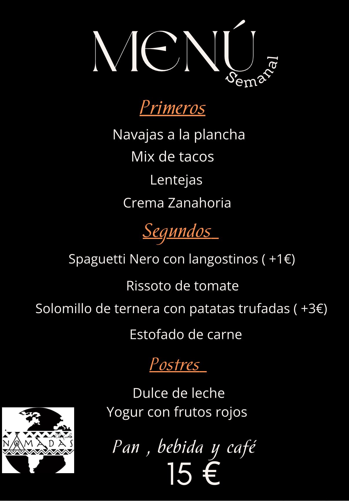 Menú (de Lunes a Viernes) 12:30 a 17:00
